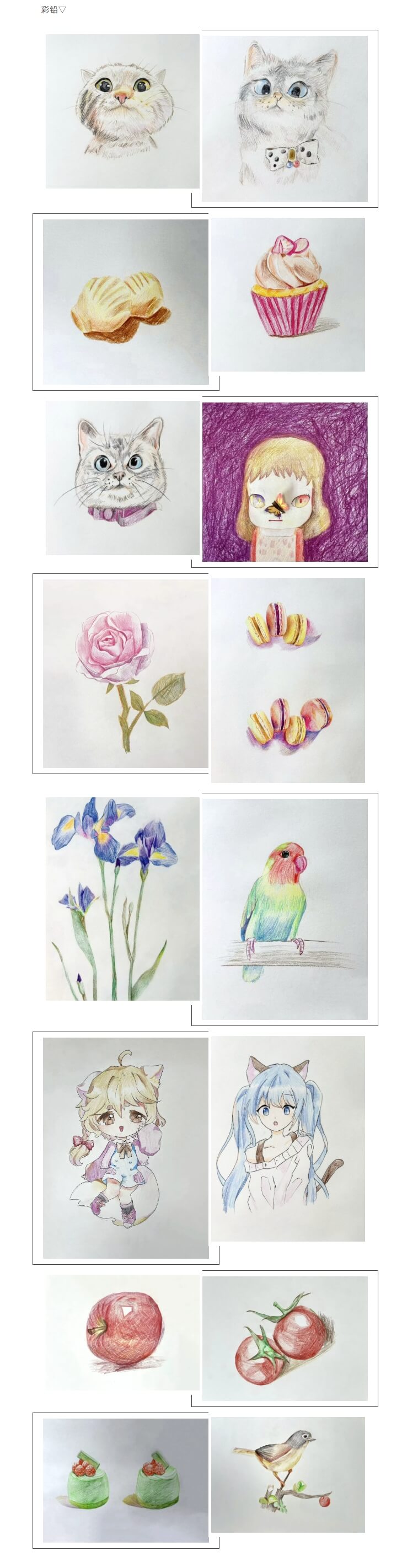 在美深画室学习的这一年里,我的课程以结构素描、彩铅、水彩为主,另外还有油画棒和丙烯的练习。在老师们的指导下,我的画技得到很大的提升。之前我喜欢画漫画、儿童画以及天马行空的各种人物,现在在系统的训练下,我知道色彩的原理、物体的构造以及明暗的由来,这些使我日常的创作更鲜活,更准确和深入。