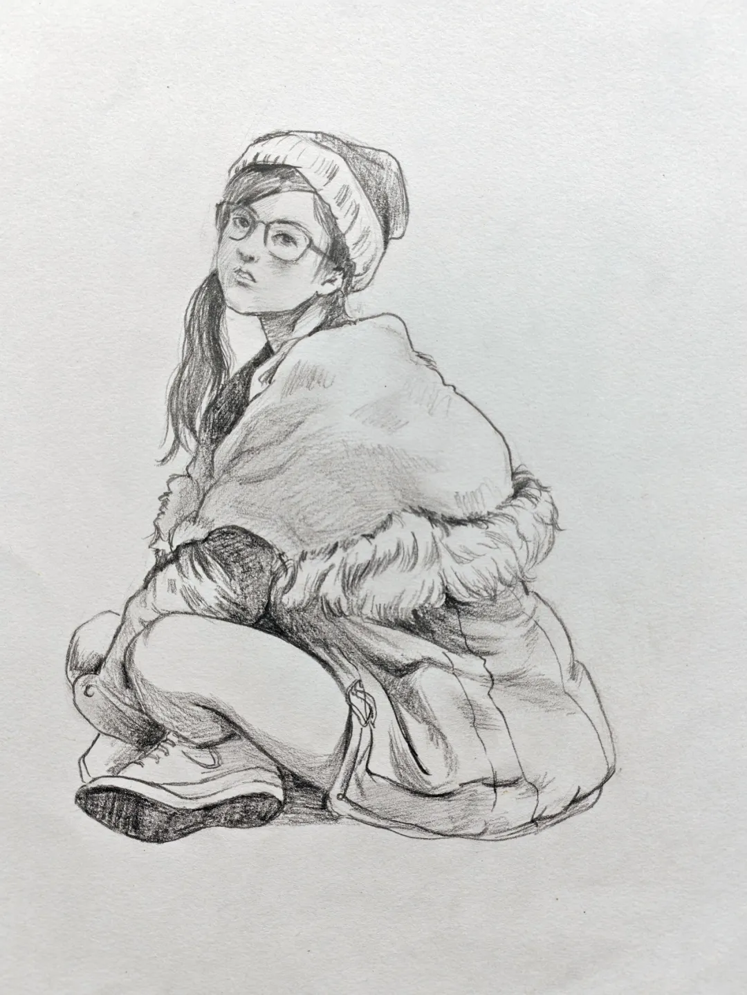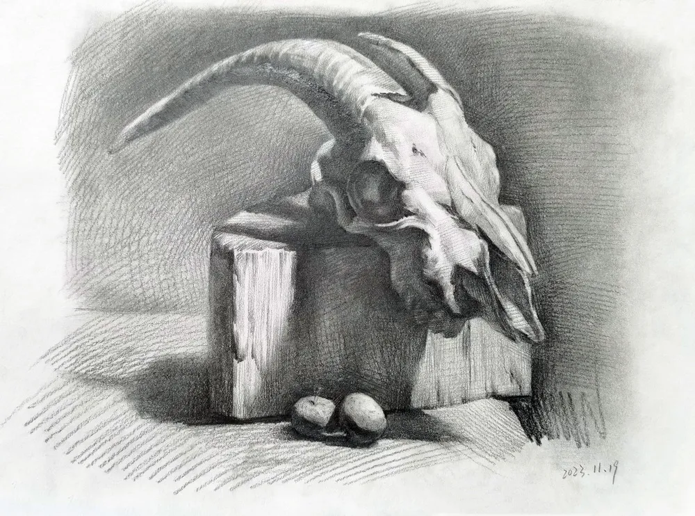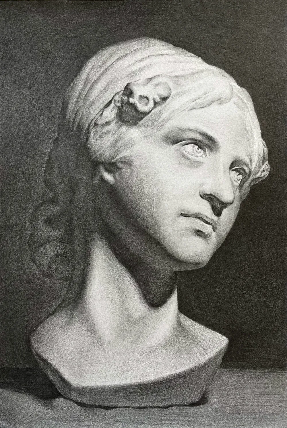 三年前,她从零开始接触绘画,始终秉持沉稳踏实的学习态度,一步一个脚印夯实基础。从素描几何体的形体塑造,到素描静物的明暗刻画,再到石膏头像的结构解析、素描风景的意境表达,恒谦认真对待每一个阶段的学习,从不急于求成。在掌握扎实的素描功底后,再挑战水彩课程,大胆尝试不同绘画形式,突破自身舒适区,感受不同绘画工具来体现画面表达情感的乐趣。