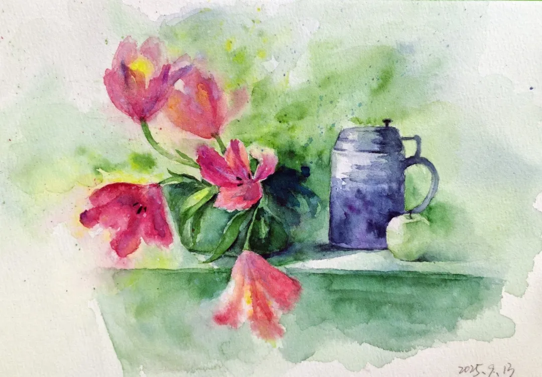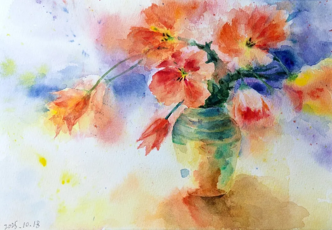 因为绘画,我学会放慢脚步,用更细腻、更温柔的目光去拥抱生活,哪怕是一片落叶、一束微光、一件寻常的静物,都能在我眼中焕发出不一样的美感。这份由内而外的改变,让我对美有了更深的感知,也让平凡的日常多了诗意与温度。